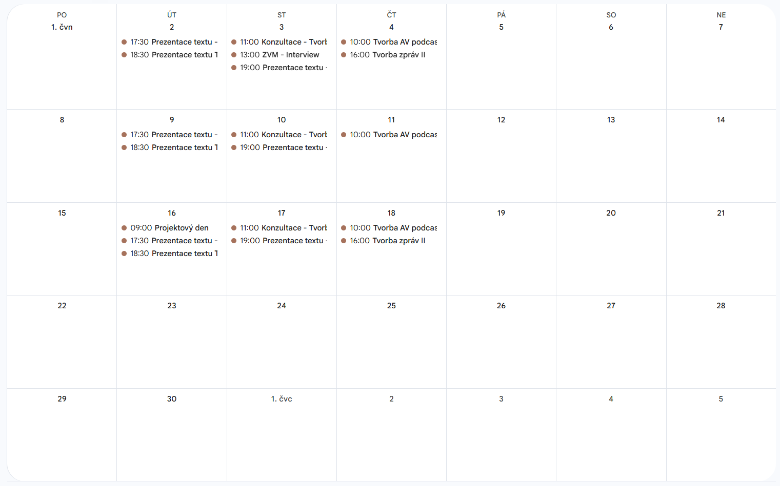 - Počet hodin: 159 hodin (bez praxe ve 2. měsíci)